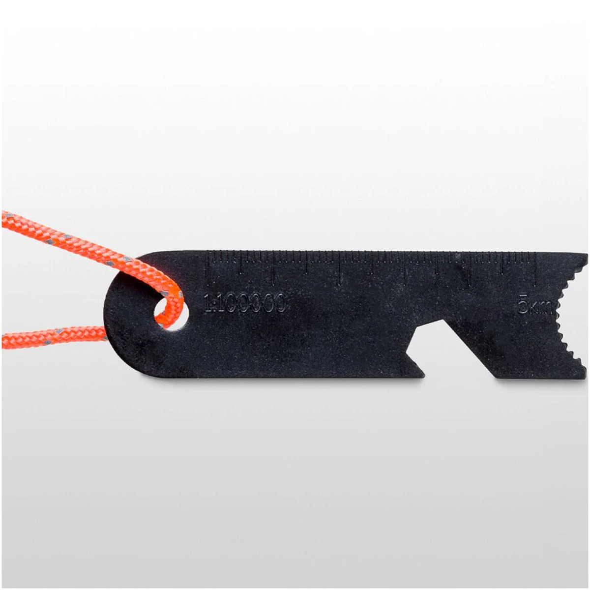 - Steel striker has a curved edge to make scraping a pile of magnesium easier and a straight edge for striking against the flint rod