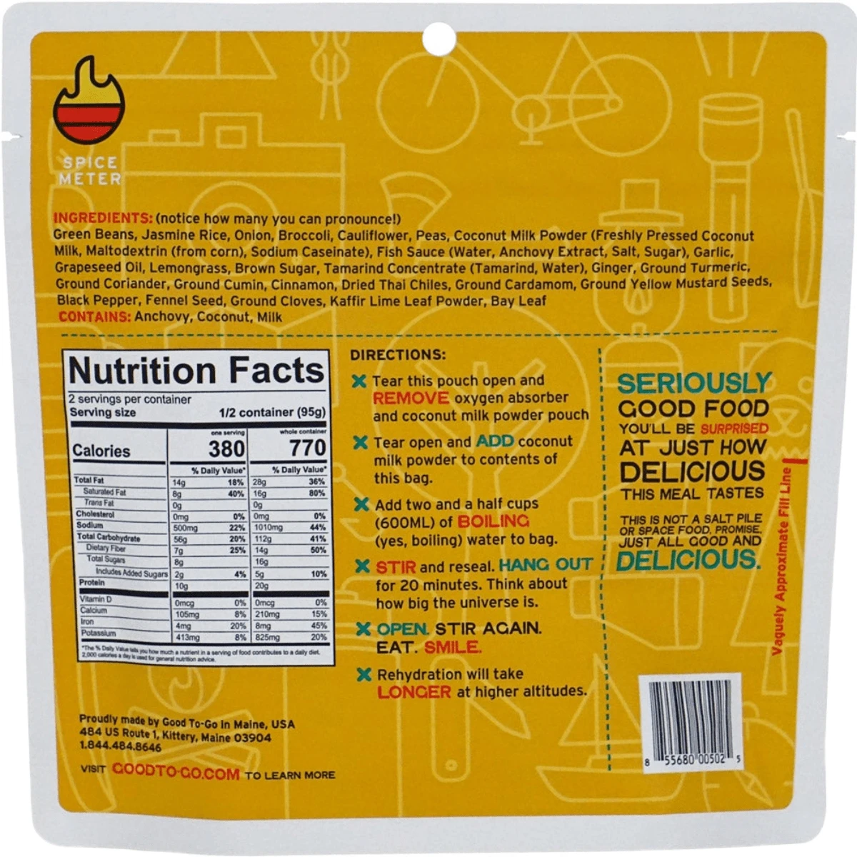 This spicy yellow coconut curry was the first meal to win the Backpacker Magazine Editors’ Choice Award in 2014 and it’s still a favorite among Good To-Go loyalists.
