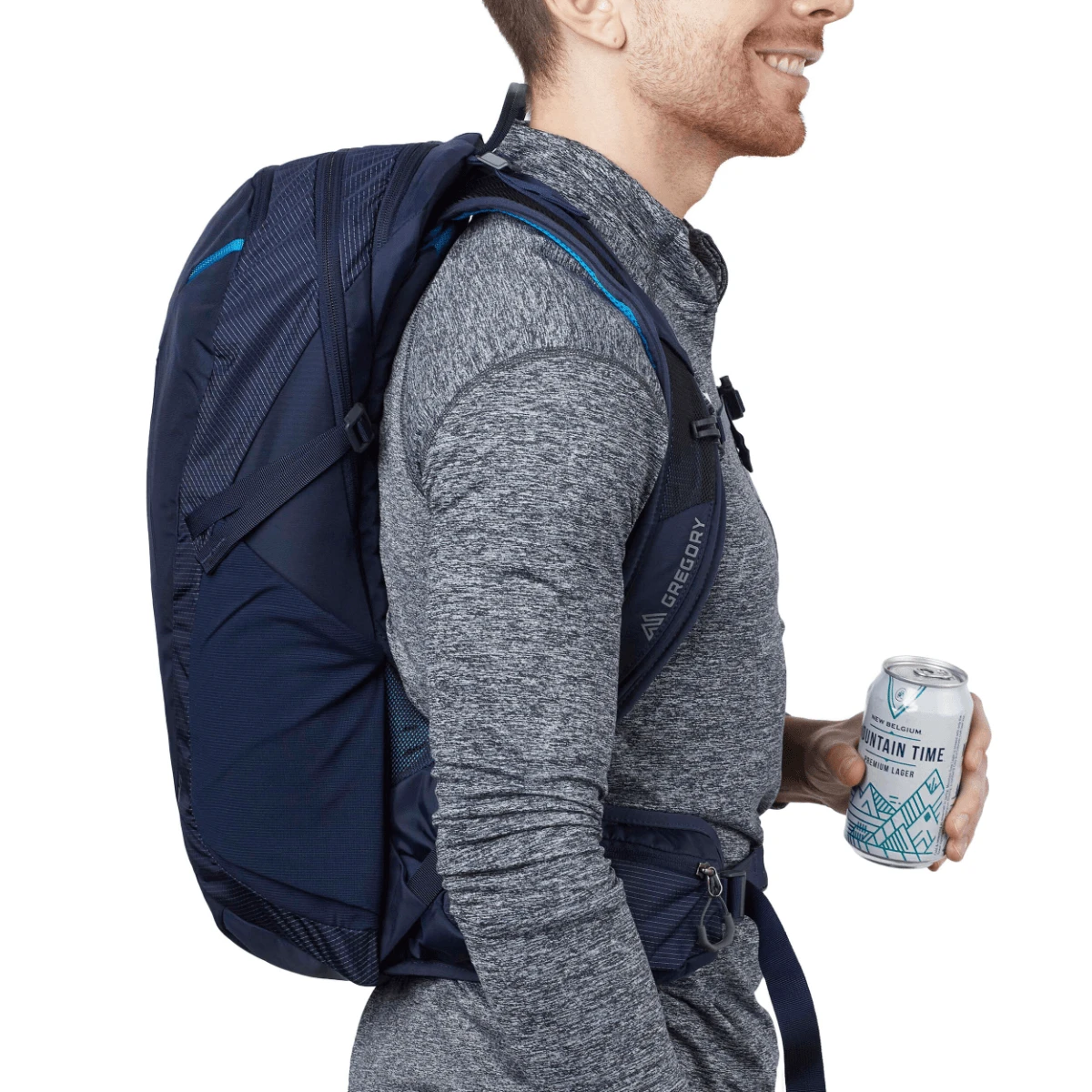 - Independent zippered pocket with SpeedClip hydration hanger, compatible with Gregory’s Hydro Reservoirs (reservoir not included)
