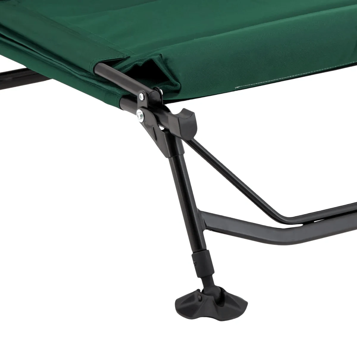 - Woods™ Portable Quick Set-up Folding Adjustable 2-in-1 Camping Lounger/Cot features a thick foam padding for added comfort